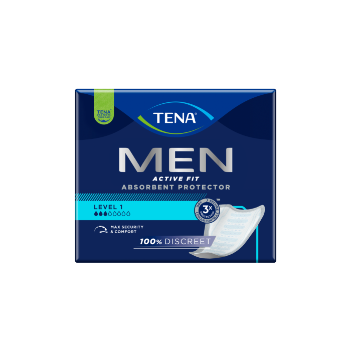 Tena Men Level 1 är ett säkert och effektivt skydd mot lindrig urinläckage hos män.